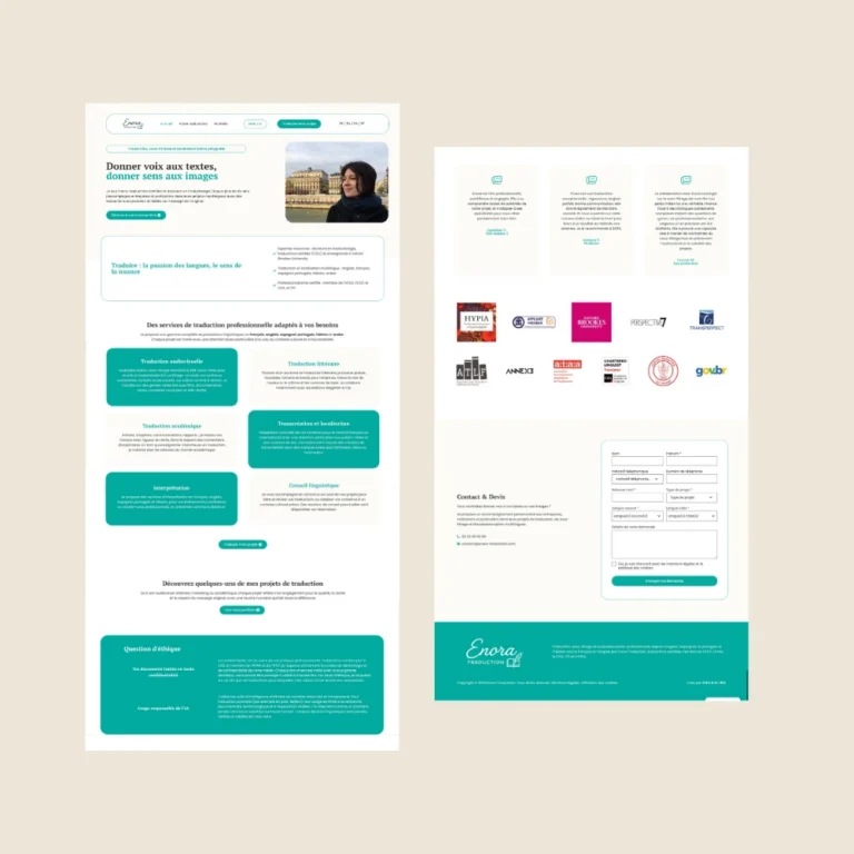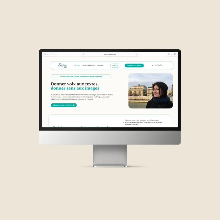 Créer un site à la fois sobre, crédible et accessible, qui s’adresse à une clientèle internationale tout en reflétant le positionnement haut de gamme et rigoureux d’Enora Traduction.