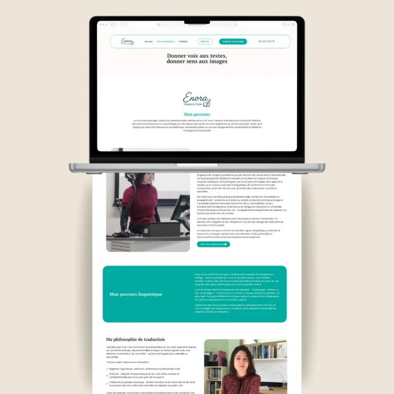 Le site renforce l’image professionnelle d’Enora Traduction et inspire confiance dès les premières secondes.